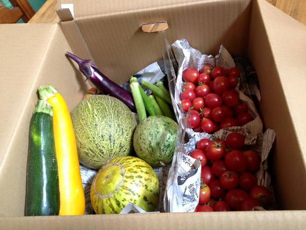 メロン+野菜セットは、このようなかたちになります。(これに、お野菜がもっと入ります)