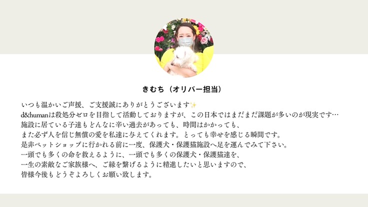 NPO法人保護団体d&humanのサポーター様を募集いたします!