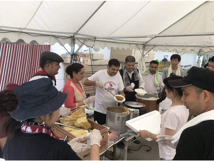 なによりアチャリヤさんの魅力は、奉仕の精神に基づいて行動をしているところです。ネパール国内への寄付による支援はもとより、熊本地震の際には、有志をつのり募金活動を行い、西日本豪雨の際には、倉敷市の真備にある二万小学校をはじめ、総社市、高梁市などに何度もカレーの炊き出しに行くなど、そのバイタリティーはとどまることを知りません。