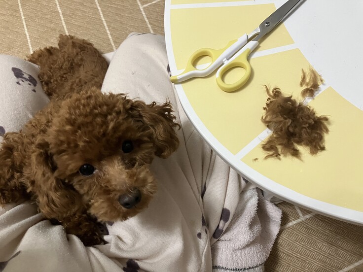 ちなみにロッキーは膝にごろんできるからカットが大好きみたいです🐶