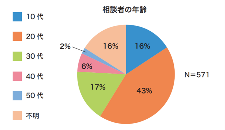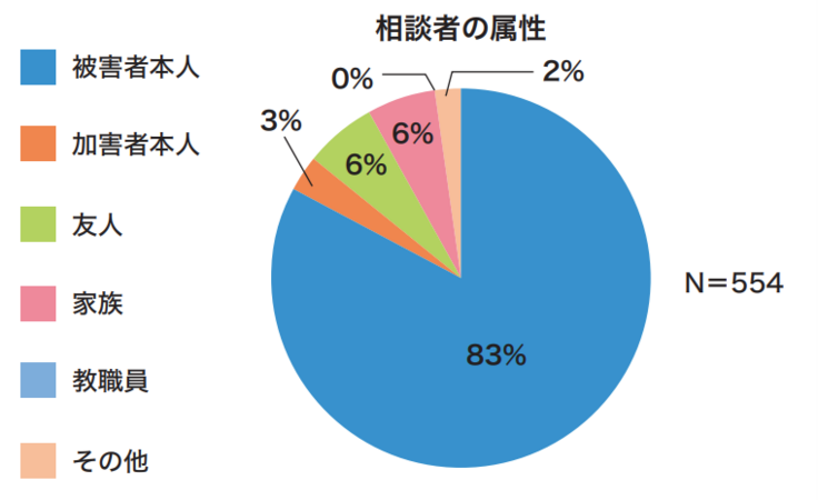 また、下記グラフのように、被害者だけでなく、加害に気づいた人、また友人や家族からも相談を受け付けていることが大きな特徴です。