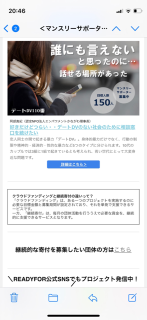 先ほど、READYFORメールマガジンで本プロジェクトが配信されました。