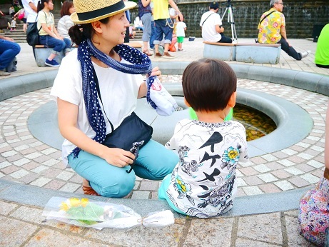 (お子さま連れで楽しんでいただけました!募金で差し上げた一輪のひまわりとともに)
