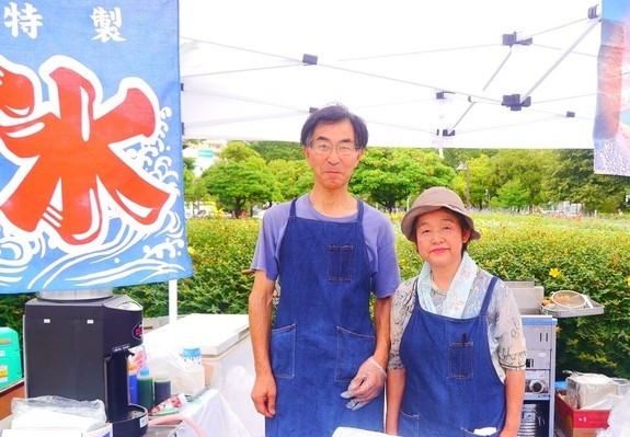 (2013年の一コマ。地場の商店のご夫婦も快くご協力いただきました!)