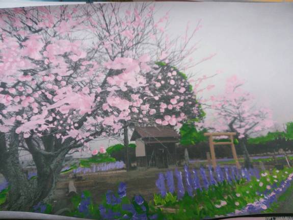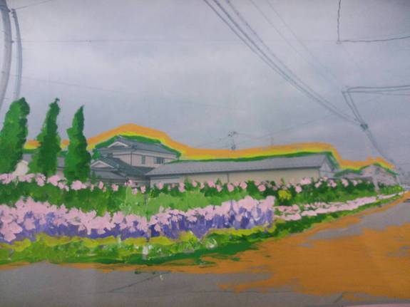 震災で風景が変わってしまった地域の写真を撮影し、そこにあった木々やそこにあってほしい風景をその写真に描く、というものでした。