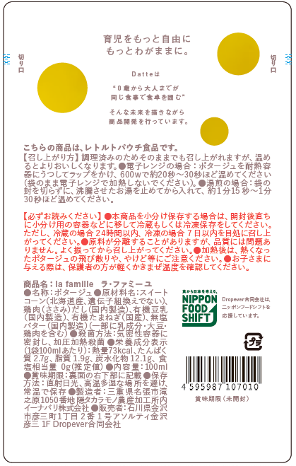 Datte | ダッテ 大人もおいしい無添加乳幼児食の店。 Datteは、"0歳から大人までが同じ食事で食卓を囲む" そんな未来を描いた、添加物不使用のレトルト乳幼児食の企画・開発・販売を行っています。"育児をもっと自由にもっとわがままに"