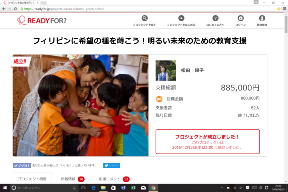 プロジェクト成立!!ありがとうございました!!