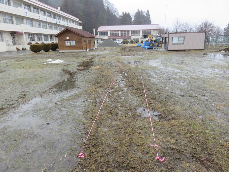 施工準備は整いましたが、グラウンドの状態が悪く路盤強度も不足しています。