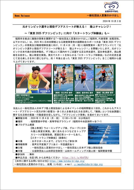 ※デフアスリート・デフスポーツ関連以外の広報活動も一部含みます(難聴関連)。