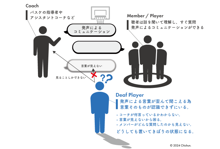 監督やチームメイトの言っていることがわからず、周囲の動きを見ながら判断して行動するデフバスケキッズもいます。「どんな聞こえ方をして、どんな言葉を使っていて、何に困っているのか」を周りに説明できたらいいのですが、子供のうちは経験がまだ少ないため難しいと感じている人もいます。