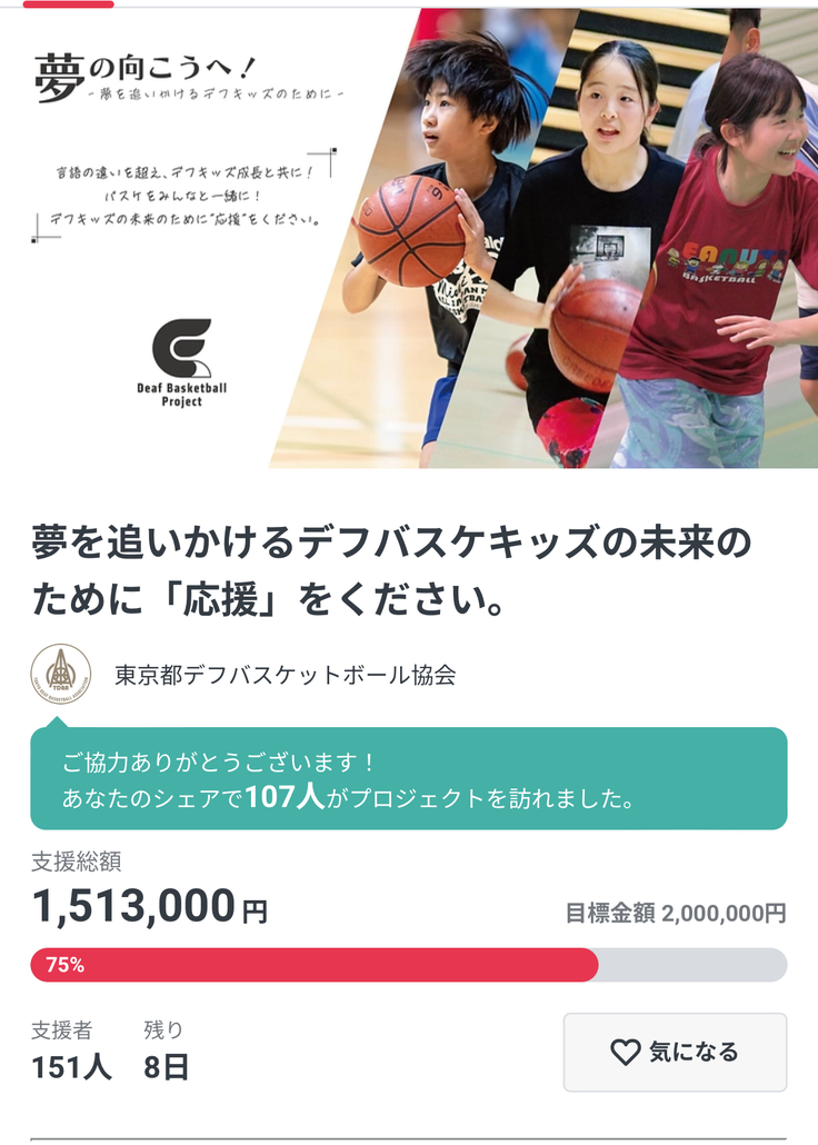 8/26までに200万を達成するにはあと50万円の応援が必要になります。