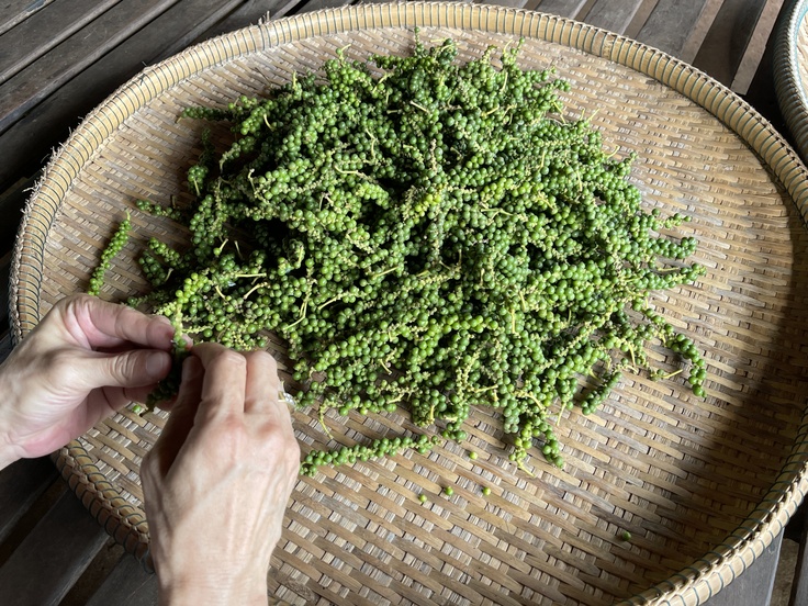 ついにはカンボジアの胡椒農園を訪問することになり、育っている胡椒を手にし、
