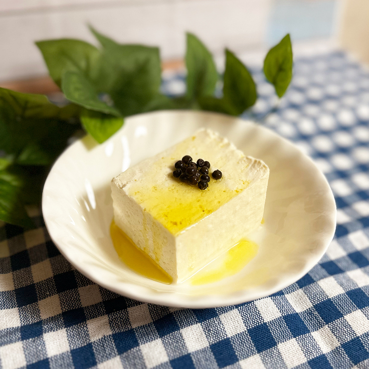 淡白なお豆腐にオリーブオイルと合わせて…。