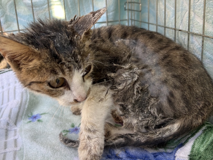 先日投稿したネズミ捕りにかかってしまった子猫ちゃんですが、その後何回かに分けて粘着を取る作業を繰り返しました。