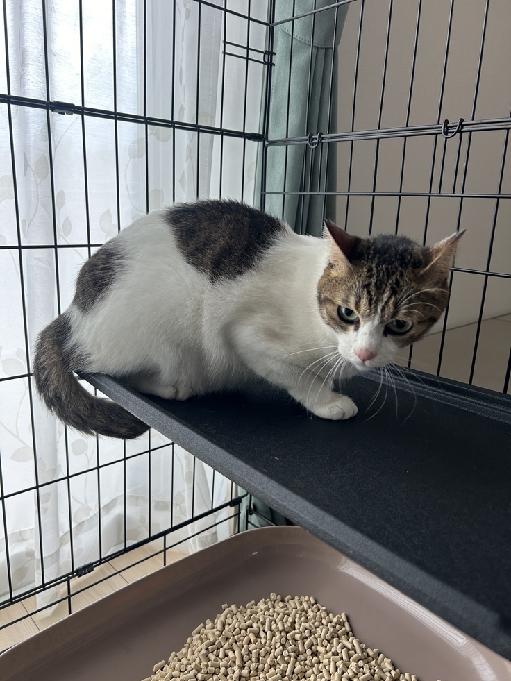 希望者の方に面会に来てもらった時もケージ越しにですが、すりすりと触らせてくれた『ちび』。