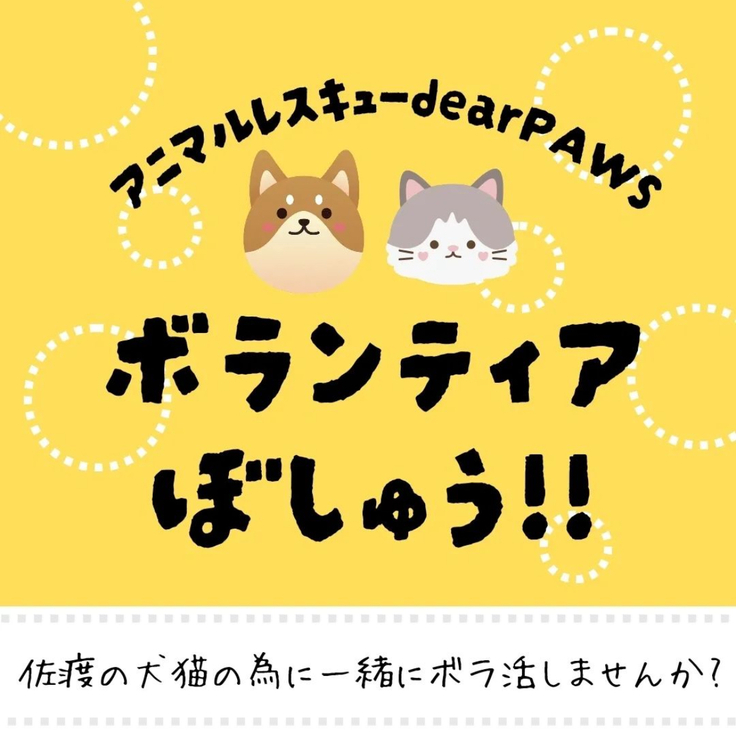 アニマルレスキューdearPAWSでは一緒に活動してくれるボランティアさんを募集しております!