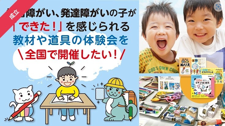 昨年、東京近郊だけで開催していた「支援教材・グッズ体験会」を「全国で開催したい!」というプロジェクトでクラウドファンディングに挑戦。お蔭様で目標金額を達成しました!