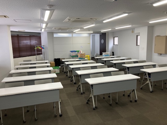 今回の会場は、近鉄奈良駅前の貸会議室でした。こんな感じの会議室を、体験会仕様に移動していきます。完成するまで約1時間かかります。