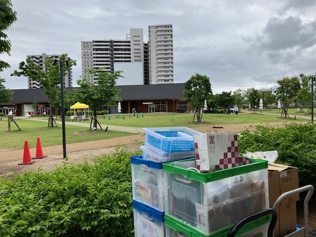目の前は、大きな芝生の広場になっていて気持ちがいい!!これからここで別の子どもイベントが開かれるところです。