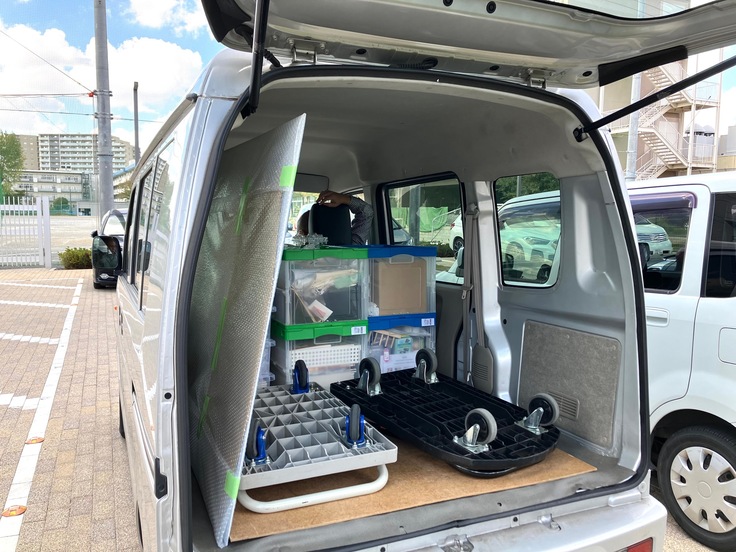 これまで開催してきた「支援教材・グッズ体験会」では、軽自動車に教材やグッズをたっぷり詰め込んであちこち移動してきました。