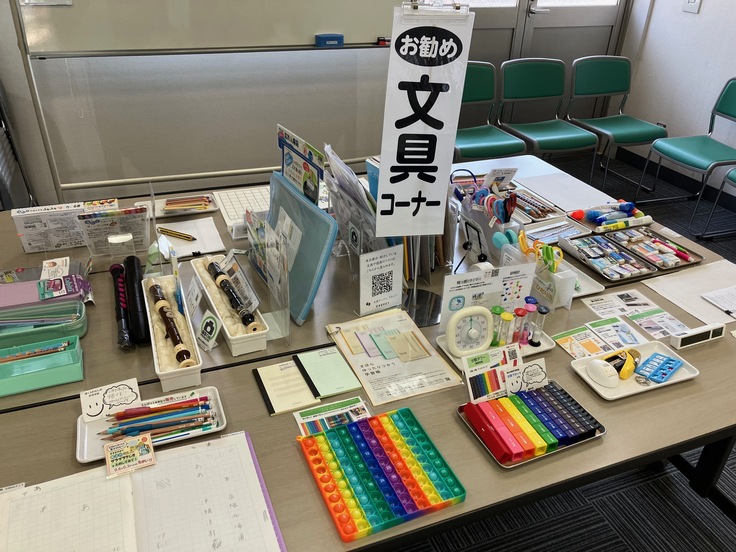 文具や道具の撮影は自由です。文具のセレクション、仕入れ等でお世話になっている、荒川区の支援サークルプティパさんが、持参している商品のリストを作成してくださっています。ご厚意により、こちらのリストも撮影可!ぜひ子どもたちの「できた!」のために活用してください。