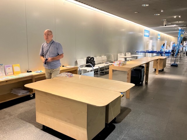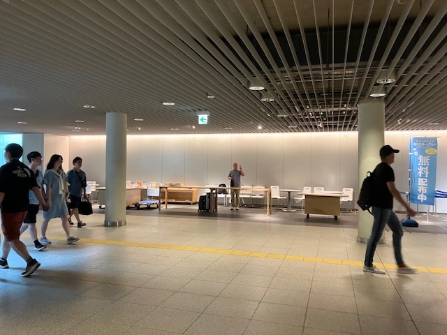 8:00に札幌・新千歳空港に着いて、電車で札幌駅に移動。チカホにて展開するスペースを確認して、レンタルしていたディスプレイ台などを倉庫から出して設置しました。