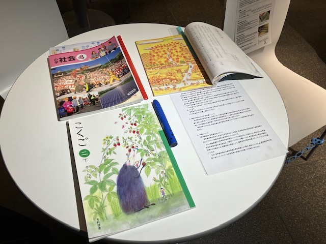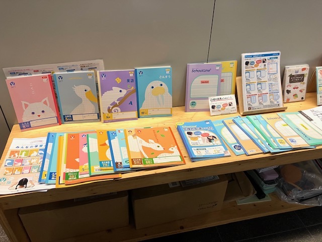 <合理的配慮のためのノート>と新たに発売された<みんなの学習ノート>も展示しました。<みんなの学習ノート>の動物たちがスポットライトに照らされて可愛かったです♪