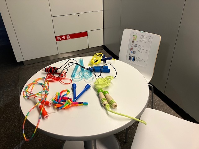 みんな大好き、縄跳びも並べました。さすがにチカホで走りながら跳ぶ子がいたらどうしよう💦とは思いましたが。(幸い走る子はいませんでした)