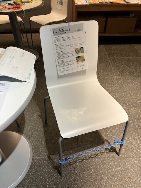 センサリーグッズ「ふみおくん」も設置。感覚の刺激を求めて立ち歩いてしまう子におススメです。実際に座って試してみる方もいました。
