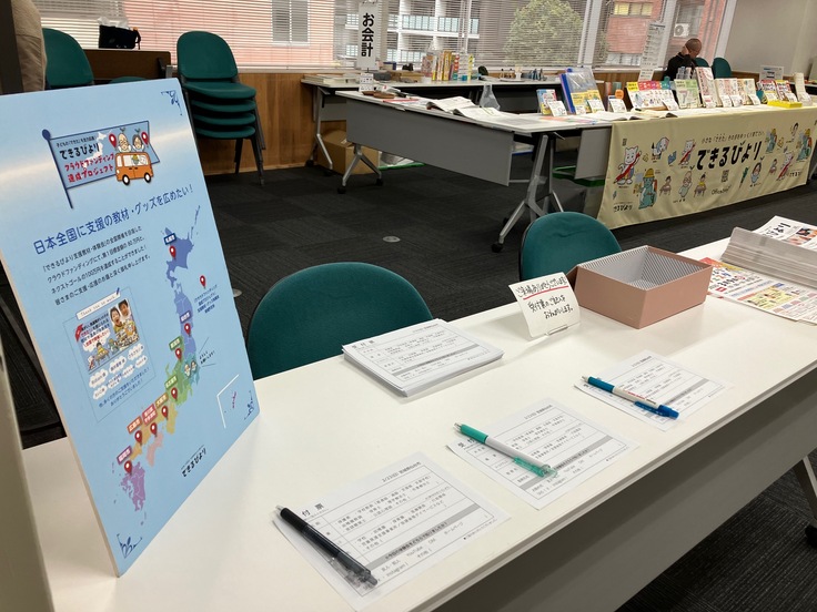 慌ただしくて写真は撮れませんでしたが、その他にもなわとびやランドセルカバー、「合理的配慮のためのノート」や「みんなの学習ノート」「音声付き教科書」も展示しました。