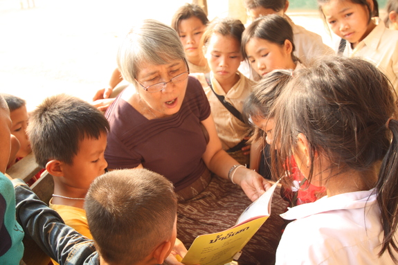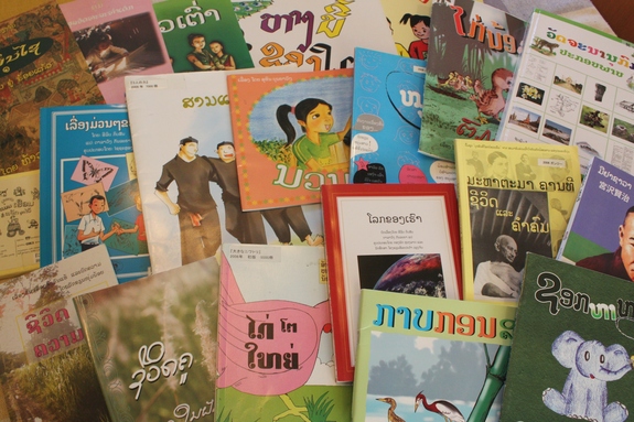 ラオスの子ども達のために活動を始めた当時、ラオスの首都ヴィエンチャンには国立図書館と国営書店が1軒あるだけで、子どものための本などありませんでした。地方へ行けば、村の学校とお寺の他に文字は存在しないという生活で、ある若い女性は縫製の職業訓練を受けていましたが、教わったことをノートに書き留めることができませんでした。経済的に自立するため、新しい知識や技術を修得したいと思っても、文字の読み書きができないと、そのチャンスは非常に限られてしまいます。