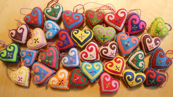(モン族手作りの可愛らしいハート形ストラップ。左が小 右が大限定12個)