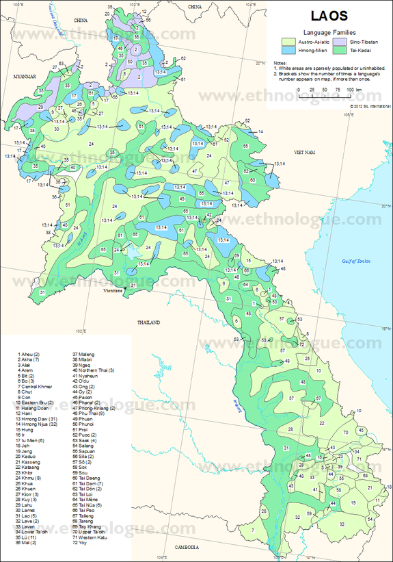 (ラオスの民族分布図 出典先Ethnologue Languages of the World http://www.ethnologue.com/map/LA