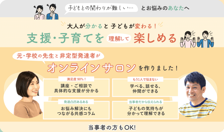 オンラインサロン『凸凹さんの味方』では、発達障害の特性や支援を学び、子どもの良き理解者・味方になれる大人を増やす活動をしています。