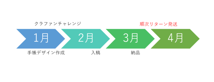 【チャレンジ実施~2月中旬】 ・らしさダイアリーのデザイン ・リターン動画の作成 (製作費予算10万円) 【2月末~3月初旬】 ・らしさダイアリーの製本の実施 (印刷・製本費用:30万円/300冊) 【3月末~4月初旬】 ・らしさダイアリー納品 └順次リターン発送(梱包・発送費用 約10万円)