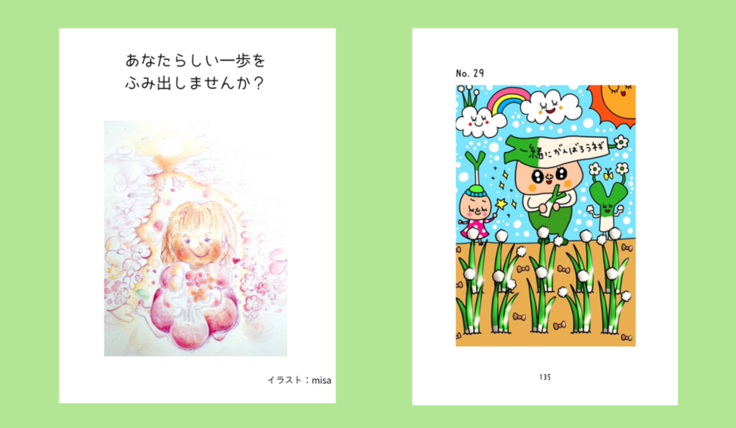そしてイラストには、それぞれのクリエイターさんの大切な想いがこもっています。また、イラストをめくると書かれている言葉は、見ていただく人に寄り添うイメージで書きました。