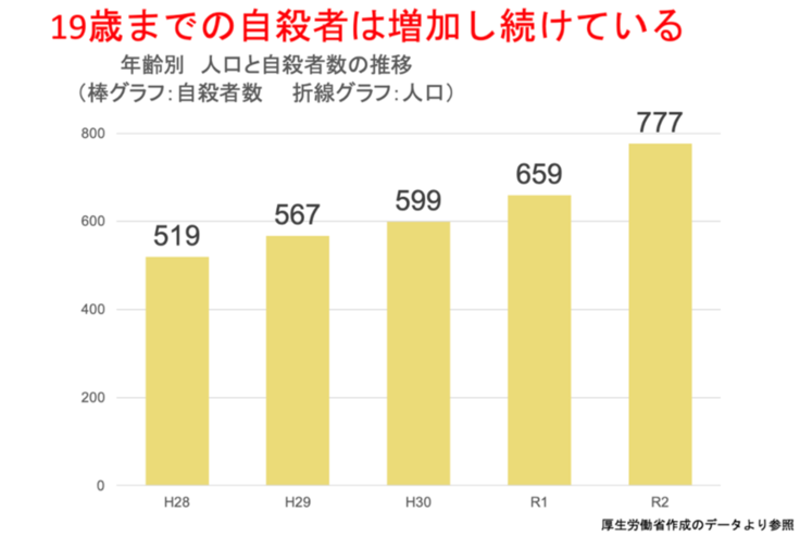 子どもの数は減少しているのに、自ら命を絶ってしまう子どもたちは増えているのです。