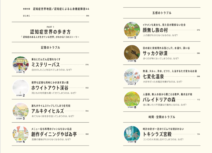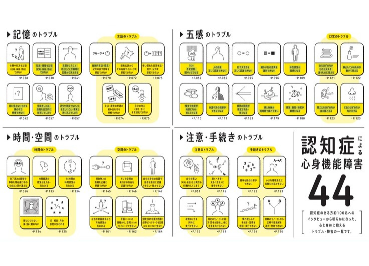 認知症のある方々およそ100人にインタビューを行い、そこから見えてきた彼らの世界の見え方や感じ方、日々の困りごと、認知機能の変化、それらを整理し、可視化した結果として生まれたのが、書籍『認知症世界の歩き方』です。