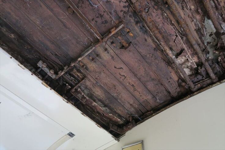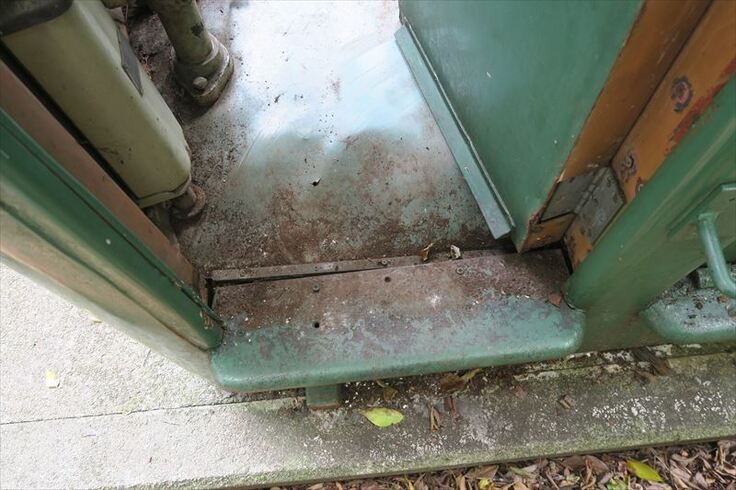 こんなにも皆さまから親しまれ、歴史的にも価値のある「デナ21型」なのですが、カットモデルは現在、風雨にさらされ、天井や床には穴が開いてしまうなど、見るに堪えない状況となっています。