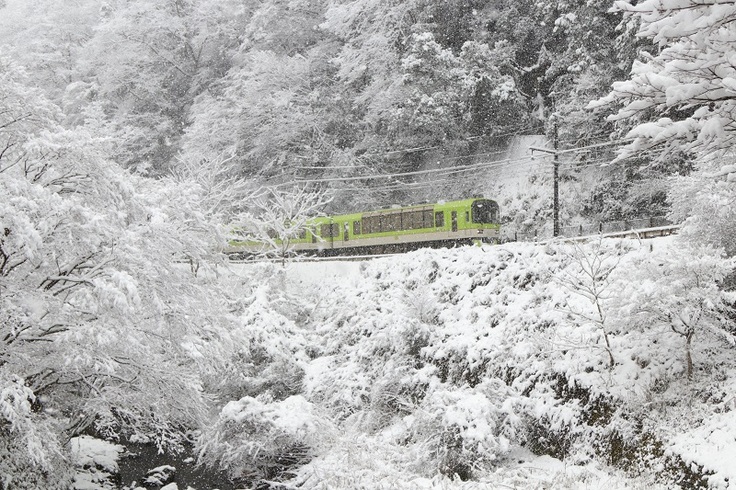 西へ向かうと貴船口駅や鞍馬駅に続き、沿線には、貴船神社や鞍馬寺など歴史ある社寺があるほか、初夏の新緑、川床で味わえる料理、秋の紅葉、冬の雪景色など四季折々の自然が楽しめます。特に、市原駅~二ノ瀬駅間にある「もみじのトンネル」では、夏にはさわやかな青もみじ、秋には色鮮やかな紅葉がご覧いただけます。