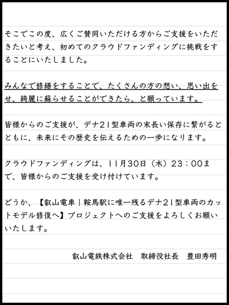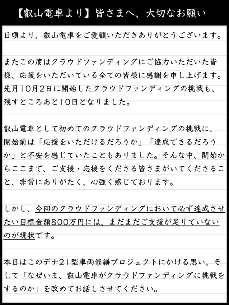 【叡山電車より】クラウドファンディングについて大切なお願い