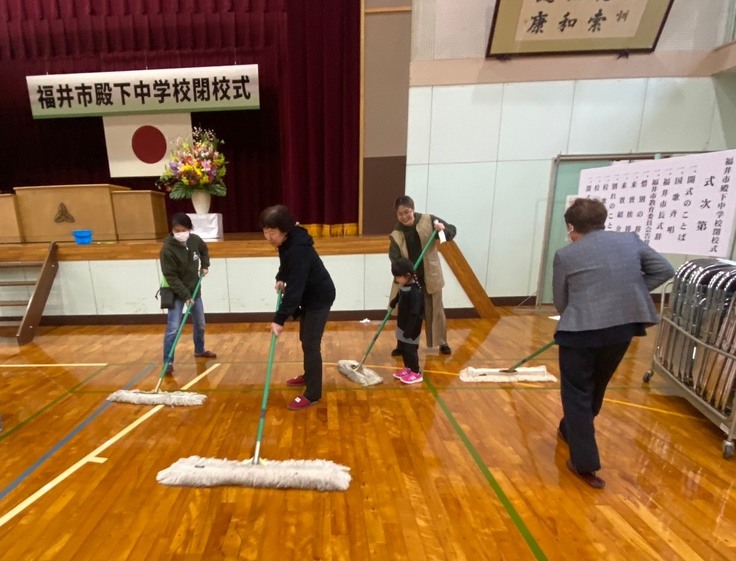 閉校式の後、来賓の皆さんはお帰りでしたが、たくさんの方々が残ってくださり、心を込めて掃除をしました。