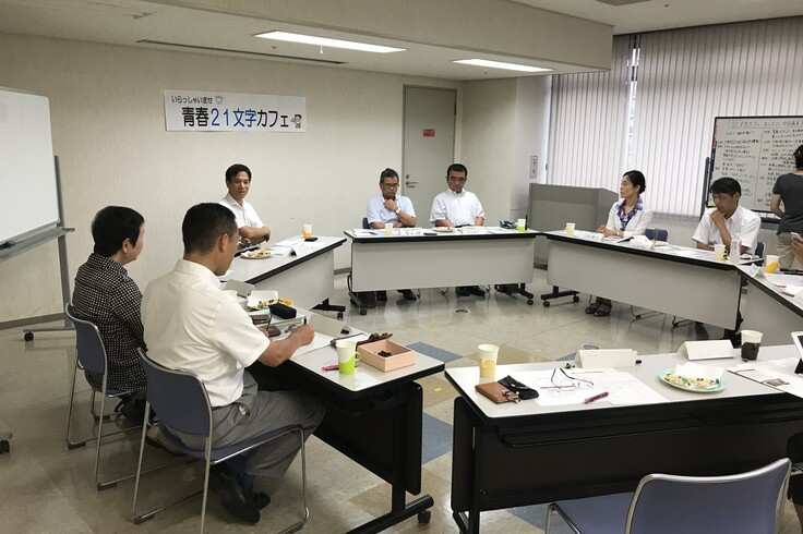 (全国から学校単位での作品応募も) (多様な方々を交え事業についての意見交換)