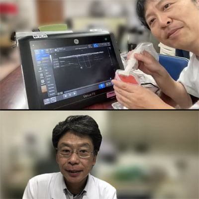 2023年11月24日に、会津中央病院歯科口腔外科の先生にzoomによるインストラクションを行いました。10月28日に口腔内超音波診断装置とファントムをお貸しして、自主練習をしていただいていましたが、このたび模擬癌の最深部を検出して、深さを計測してくださるようお願いしましたところ、非常に正確に画像化してくださいました。このプローブの画質は大変高評価です。