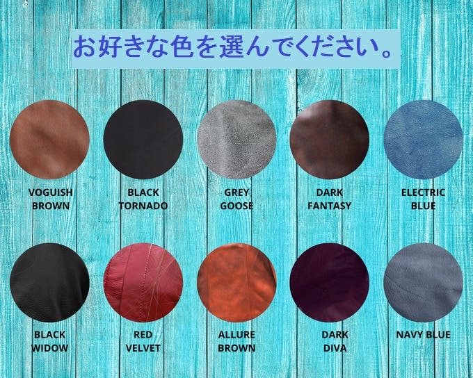 あなたのお好きなデザインの革の色を上記10種類からお選びいただけます。応援購入画面で上記10種類の中からお好きな色を選択してください。