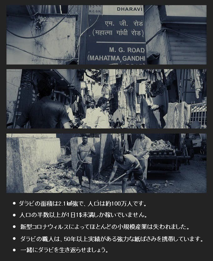 私たちは個人のグループで集まって、ダラビの職人がこのパンデミックの状況と立ち向かえるように、世界的に独占的な革製品を発売することを決意しました。私たちのベテランのファッションデザイナーのチームは、ダラビの職人と協力して彼らの夢を実現し始めました。私たちは、彼らが世界市場で卓越した成果が出せるように彼らを鍛え上げました。現在、私たちは独占的な国際ブランド「DHARAWEAR™」を考案する立場にあり、このブランドをReadyForの独占的なプラットフォームで立ち上げています。このキャンペーンが「ダラビを生き返らせる」ことを願っています。