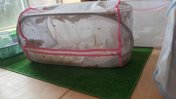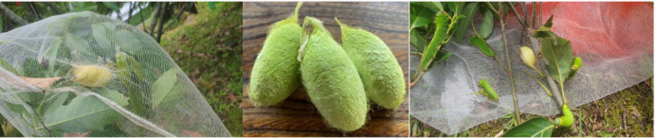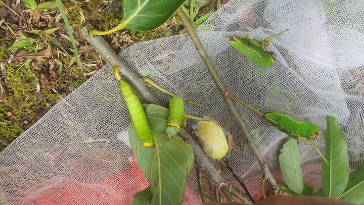 また、卵から孵った幼虫は食欲旺盛で、現在の卵を付けた枝にネットを被せる飼育法では被せたネット内の餌となる葉がすぐに無くなってしまうため、頻繁にネットを別の枝に付け替える作業が発生します。