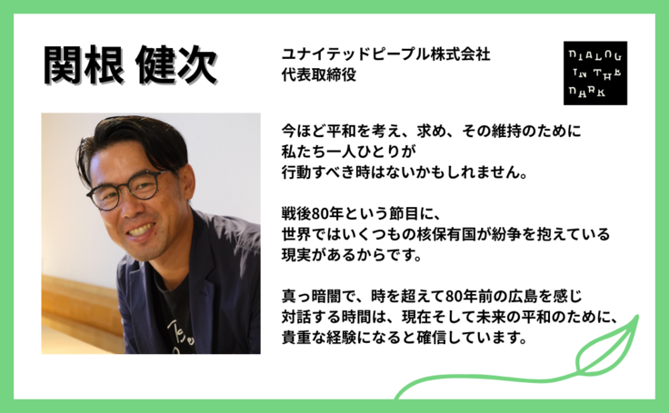 真っ暗闇で、時を超えて80年前の広島を感じ対話する時間は、現在そして未来の平和のために、貴重な経験になると確信しています。