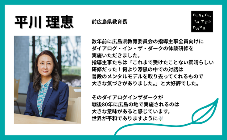 そのダイアログインザダークが戦後80年に広島の地で実施されるのは大きな意味があると感じています。