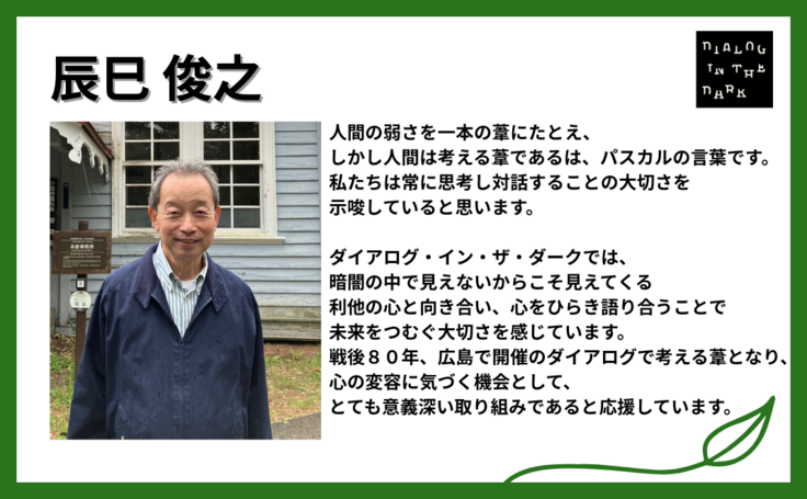 戦後80年、広島で開催のダイアログで考える葦となり、心の変容に気づく機会として、とても意義深い取り組みであると応援しています。